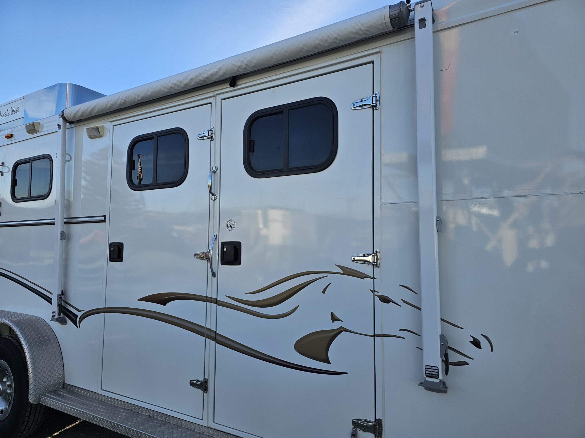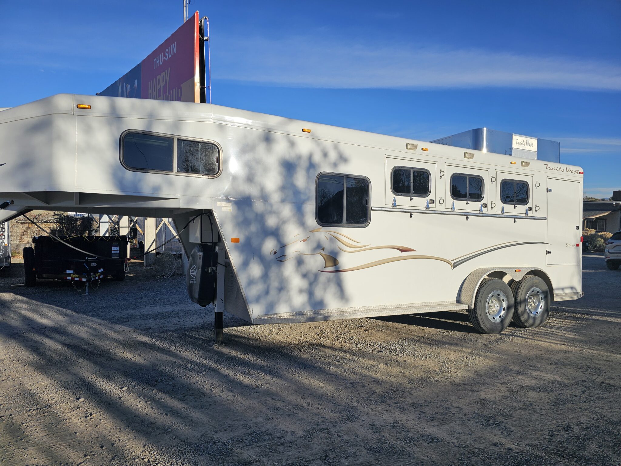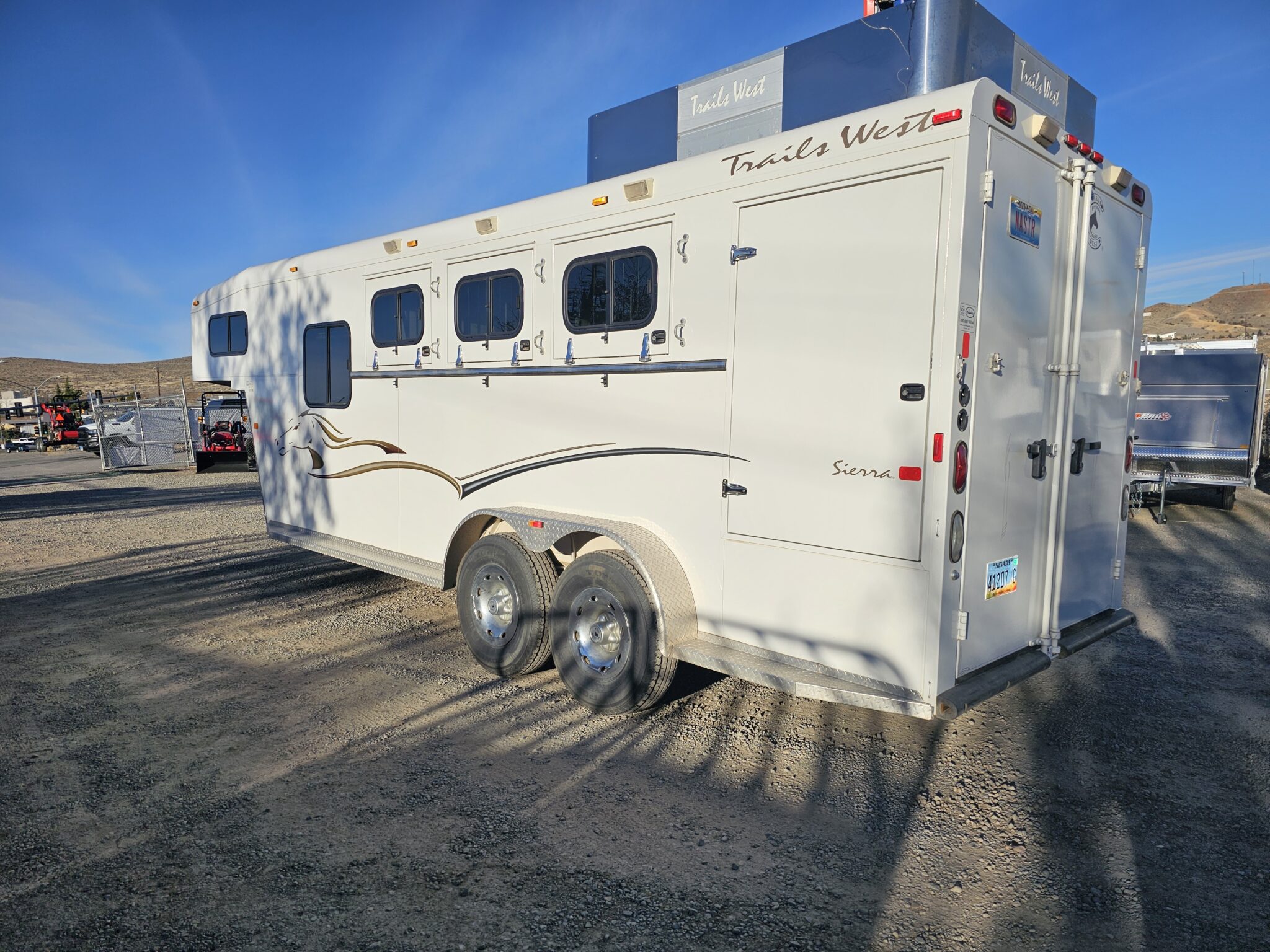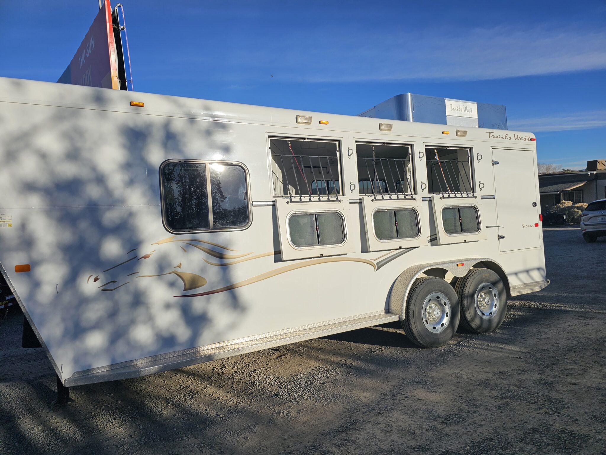 This 2007 Pre-Owned Trails West Sierra 7’x7’x20’5″ 3 Horse Trailer with Comfort Package Includes: